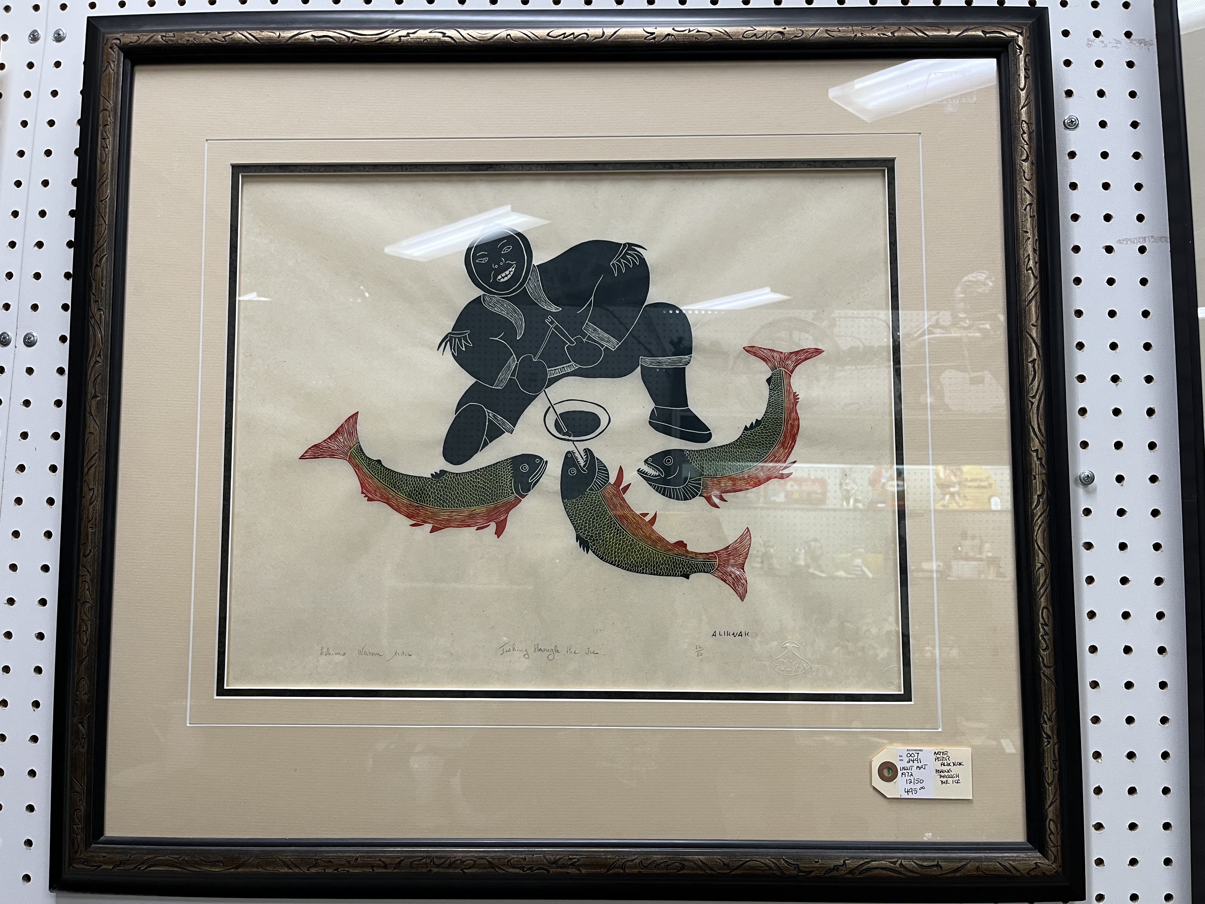 Print by Peter Aliknak, “Fishing Through the Ice” (1972) – $495.00